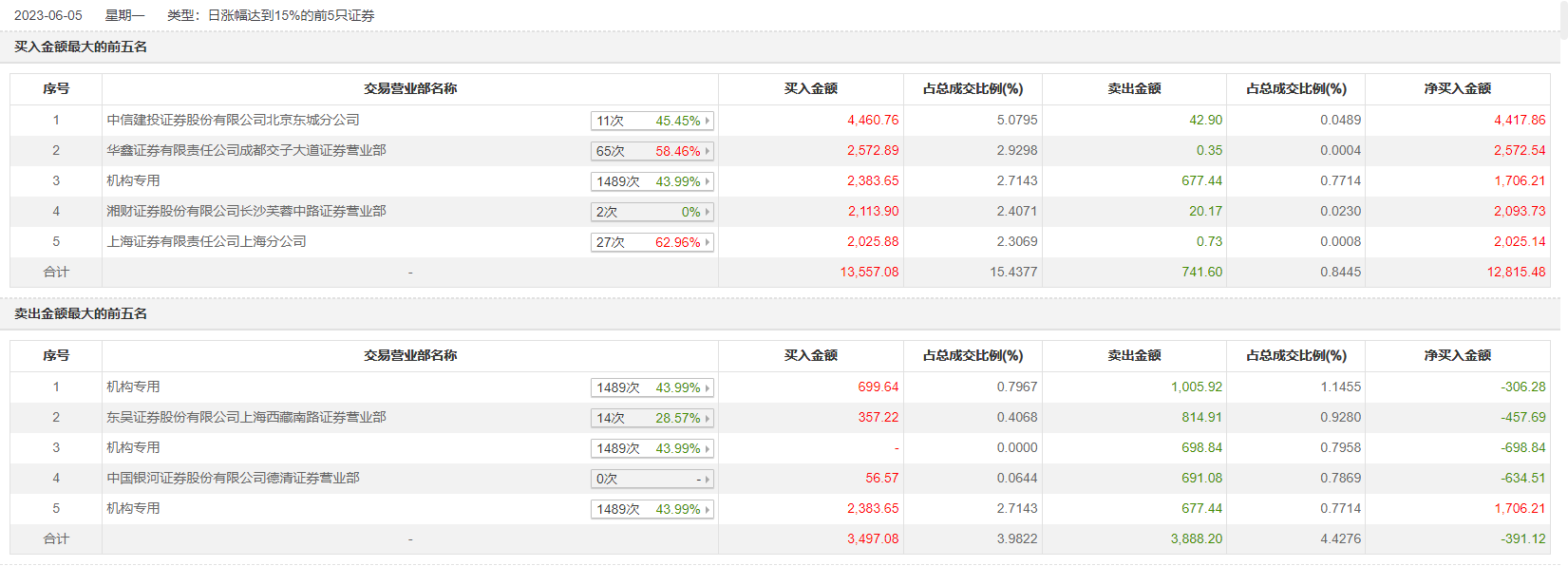 具体来看,机构买入3083.29万元,卖出2382.2万元,合计净买入701.09万元。此外,中信建投证券北京东城分公司、华鑫证券成都交子大道证券营业部分别买入4460.76万元、2572.89万元;东吴证券上海西藏南路证券营业部、中国银河证券德清证券营业部分别卖出814.91万元、691.08万元。