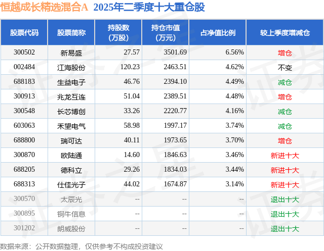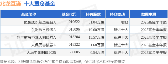 根据2025基金半年报公募基金重仓股数据,重仓该股的公募基金共5家,其中持有数量最多的公募基金为恒越基金的恒越成长精选混合A。恒越成长精选混合A目前规模为3.48亿元,最新净值0.8686(9月25日),较上一交易日上涨0.96%,近一年上涨89.94%。该公募基金现任基金经理为廖明兵。廖明兵在任的基金产品包括:恒越内需驱动混合A,管理时间为2025年1月2日至今,期间收益率为5.32%。