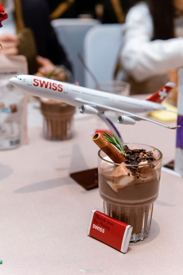 如果你把这块巧克力翻过来,就会发现,这款美味的巧克力来自瑞士百年巧克力品牌飞瑞尔Frey。飞瑞尔自2015年成为SWISS Schggeli(瑞航小巧克力)的官方供应商,这款采用100%雨林联盟认证优质可可豆+100%瑞士本土纯净奶源制造的巧克力一直深受瑞航乘客们的喜爱,光是2024年,瑞航乘务员便向乘客发放了约1930万份SWISS Schggeli,总重高达270吨(胖每次飞瑞航起码贡献3份[色])