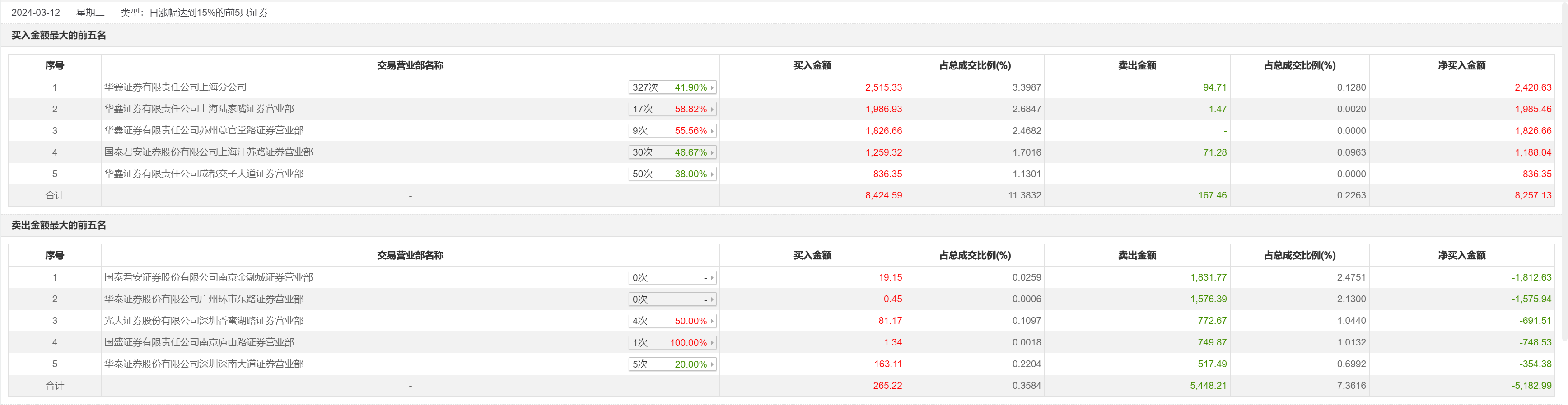 具体来看,知名游资现身龙虎榜,华鑫证券上海分公司、华鑫证券上海陆家嘴证券营业部分别买入2515.33万元、1986.93万元;作手新一(国泰君安证券南京金融城证券营业部)、华泰证券广州环市东路证券营业部分别卖出1831.77万元、1576.39万元。
