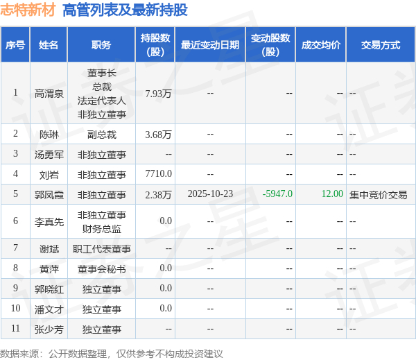 志特新材近半年内的董监高及核心技术人员增减持详情如下: