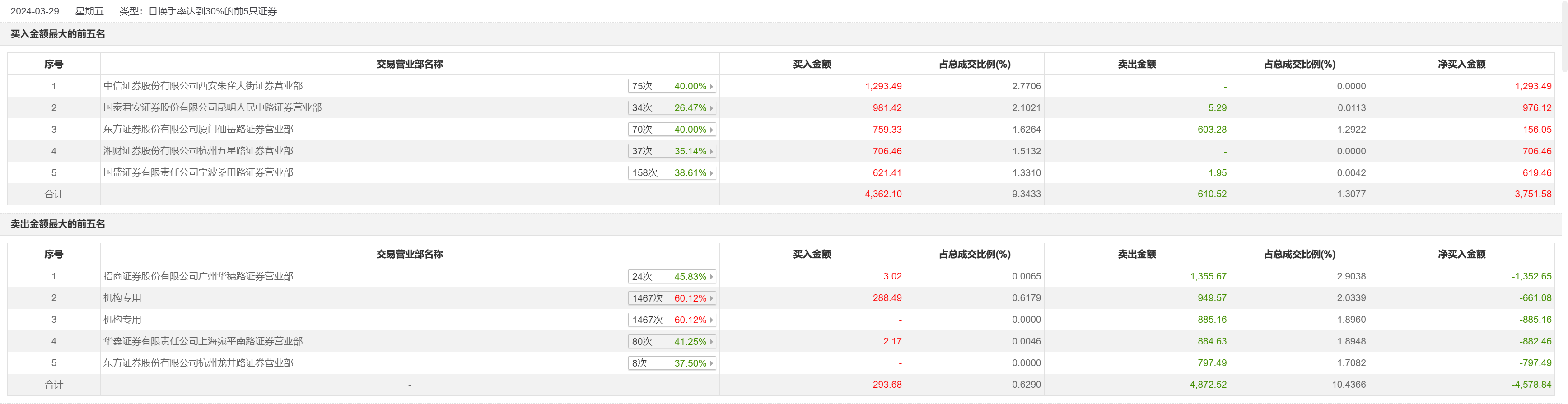 具体来看,机构买入288.49万元,卖出1834.73万元,合计净卖出1546.24万元。此外,知名游资现身龙虎榜,方新侠(中信证券西安朱雀大街证券营业部)、国泰君安证券昆明人民中路证券营业部分别买入1293.49万元、981.42万元;招商证券广州华穗路证券营业部、炒股养家(华鑫证券上海宛平南路证券营业部)分别卖出1355.67万元、884.63万元。