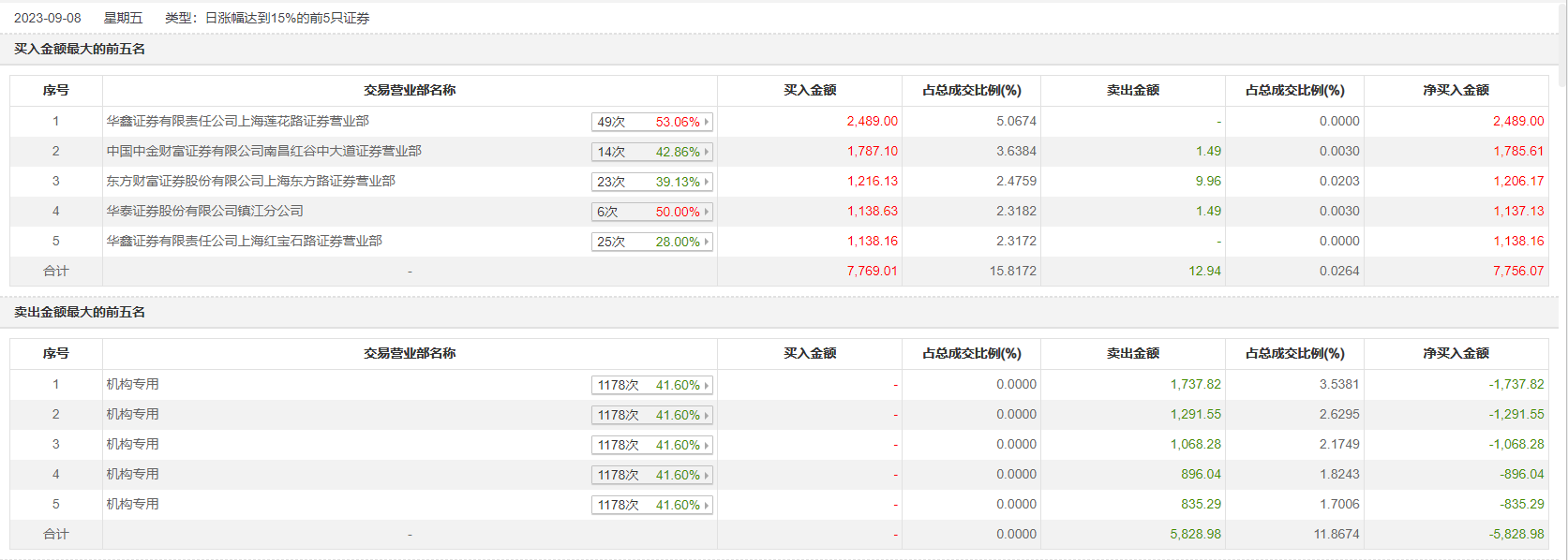 今日20cm涨停,成交额4.91亿元,换手率23.86%,盘后龙虎榜数据显示,五机构净卖出5828.98万元。