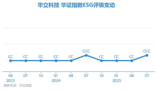 日前,华证指数公布了新一期(2025年7月31日)的ESG评级结果,华立科技(301011.SZ)获得CCC评级(华证指数评级为C起至AAA九档,C为最低档,AAA为其最高一级评级/AA为其第二档),上一期(2025年4月30日)ESG评级为CC。本期ESG评级在30家休闲设备与用品行业A股上市公司中排名第21(上一期排名第20)。