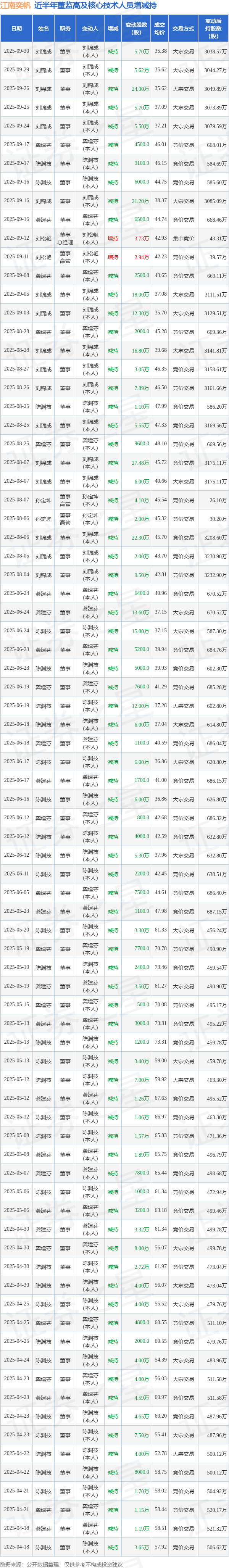 江南奕帆近半年内的董监高及核心技术人员增减持详情如下: