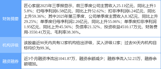 匠心家居涨5.26%,天风证券二个月前给出“买入”评级
