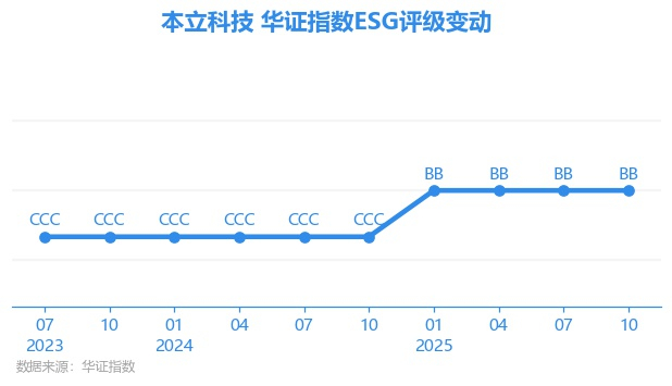 日前,华证指数公布了新一期(2025年10月31日)的ESG评级结果,本立科技(301065.SZ)获得BB评级(华证指数评级为C起至AAA九档,C为最低档,AAA为其最高一级评级/AA为其第二档),上一期(2025年7月31日)ESG评级为BB。本期ESG评级在266家制药行业A股上市公司中排名第84(上一期排名第83)。