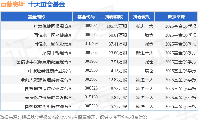 重仓百普赛斯的前十大公募基金请见下表: