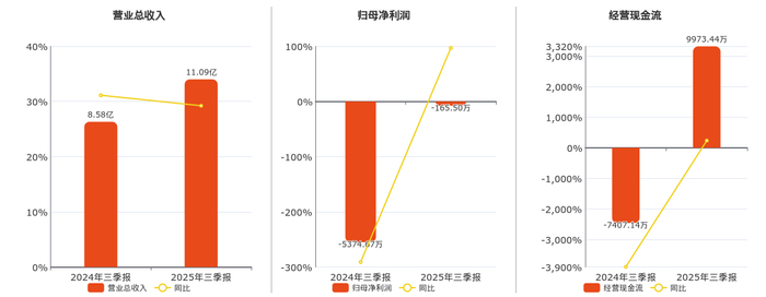 公司营业总收入为11.09亿元。归母净利润为-165.50万元。经营活动现金净流入为9973.44万元。