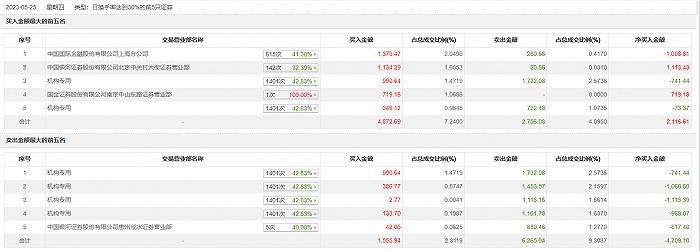 具体来看,机构买入2163.0万元,卖出6128.07万元,合计净卖出3965.07万元。此外,中国银河证券惠州淡水证券营业部、中国国际金融上海分公司分别卖出859.46万元、280.66万元;中国国际金融上海分公司、中国银河证券北京中关村大街证券营业部分别买入1379.47万元、1134.29万元。