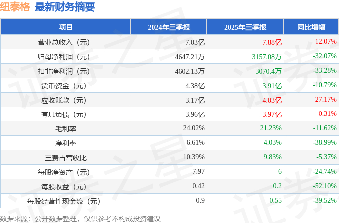 纽泰格(301229)2025年三季报简析:增收不增利,公司应收账款体量较大