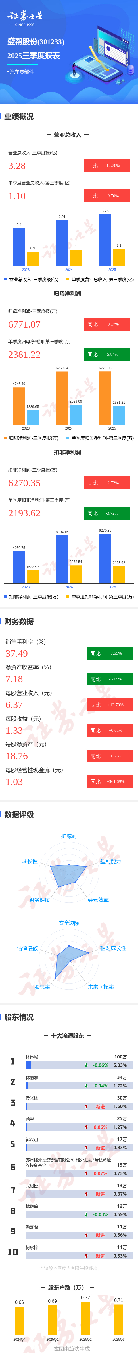 图解盛帮股份三季报:第三季度单季净利润同比下降5.85%