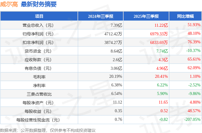 威尔高(301251)2025年三季报简析:营收净利润同比双双增长,应收账款上升