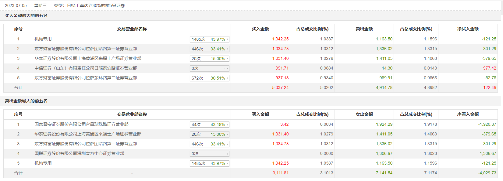 具体来看,机构买入1042.25万元,卖出1163.5万元,合计净卖出121.25万元。此外,东方财富证券拉萨团结路第一证券营业部、华泰证券上海黄浦区来福士广场证券营业部分别买入1034.73万元、1031.40万元;国泰君安证券宜昌珍珠路证券营业部、华泰证券上海黄浦区来福士广场证券营业部分别卖出1924.29万元、1411.05万元。