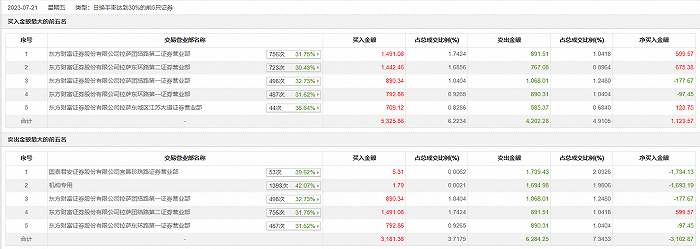 具体来看,机构买入1.79万元,卖出1694.98万元,合计净卖出1693.19万元。此外,国泰君安证券宜昌珍珠路证券营业部、东方财富证券拉萨团结路第一证券营业部分别卖出1739.43万元、1068.01万元;东方财富证券拉萨团结路第二证券营业部、东方财富证券拉萨东环路第二证券营业部分别买入1491.08万元、1442.46万元。