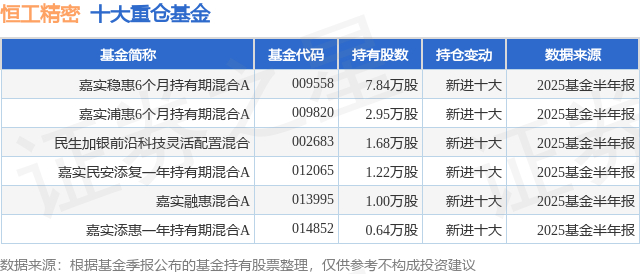 根据2025基金半年报公募基金重仓股数据,重仓该股的公募基金共6家,其中持有数量最多的公募基金为嘉实基金的嘉实稳惠6个月持有期混合A。嘉实稳惠6个月持有期混合A目前规模为8.43亿元,最新净值1.13(10月13日),较上一交易日上涨0.17%,近一年上涨7.02%。该公募基金现任基金经理为胡永青。胡永青在任的基金产品包括:嘉实策略优选混合,管理时间为2016年12月1日至今,期间收益率为83.52%;嘉实稳固收益债券A,管理时间为2020年3月16日至今,期间收益率为30.77%;嘉实浦惠6个月持有期混合A,管理时间为2020年10月14日至今,期间收益率为14.3%;