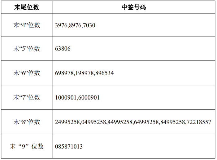 海看股份:创业板IPO网上发行中签号码共3.25万个