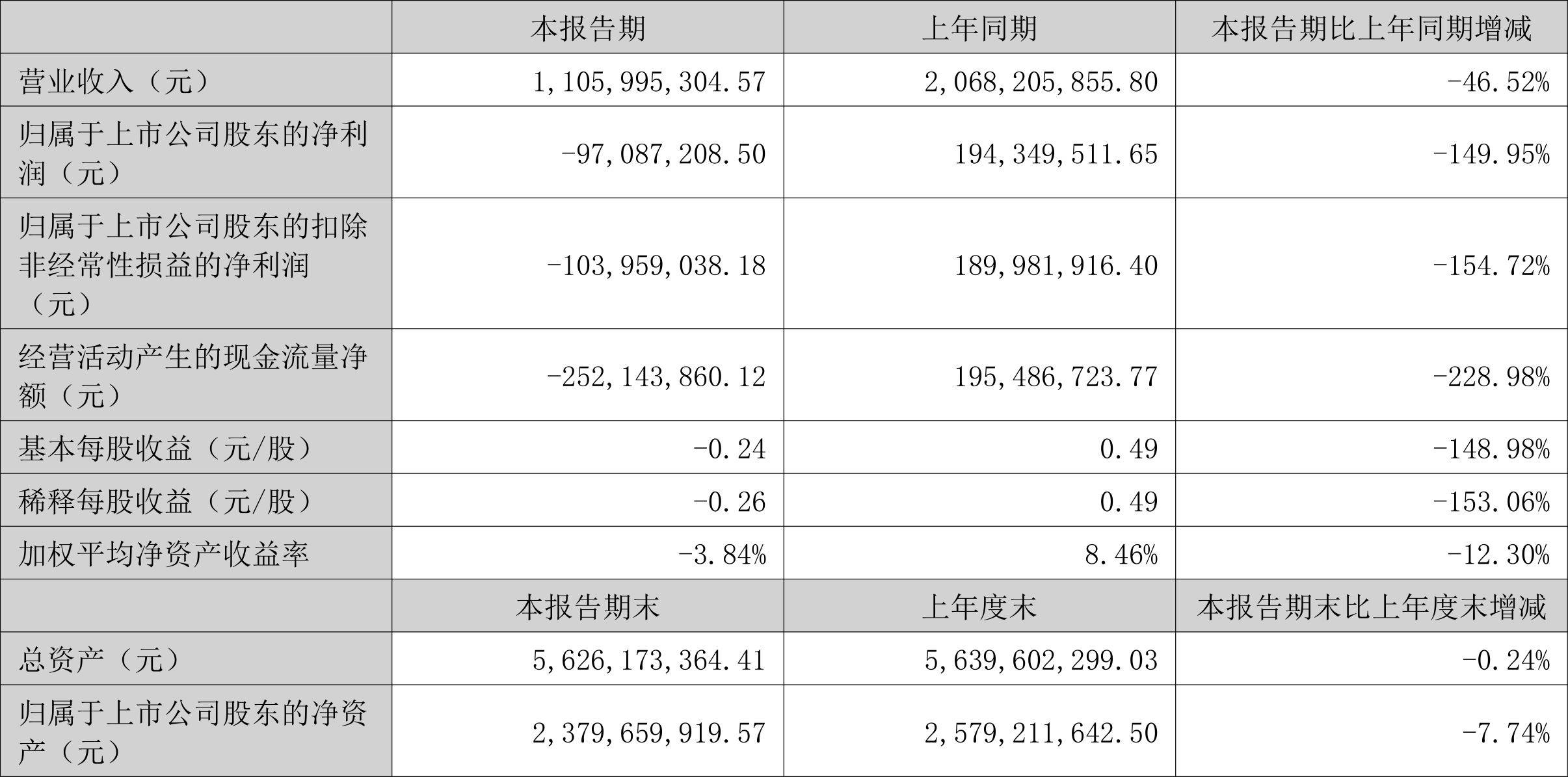 根据半年报,公司第二季度实现营业总收入5.51亿元,同比下降49.79%,环比下降0.82%;归母净利润-7777.07万元,同比下降176.37%,环比下降302.61%;扣非净利润-8162.01万元,同比下降182.05%,环比下降265.37%。