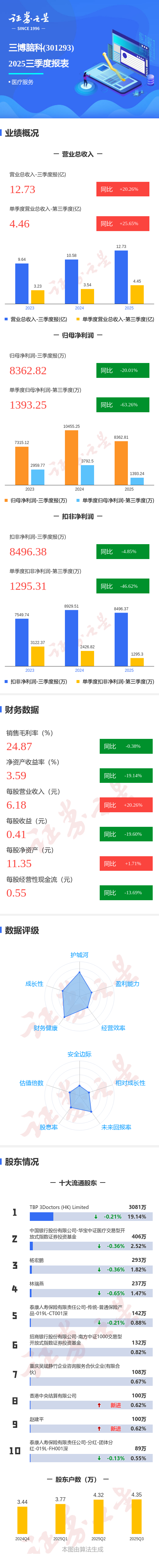 图解三博脑科三季报:第三季度单季净利润同比下降63.26%