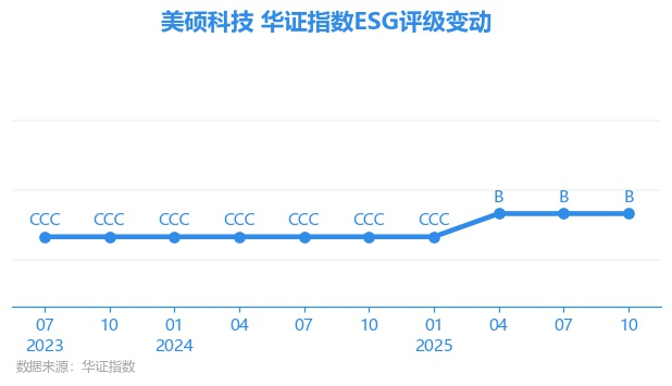 日前,华证指数公布了新一期(2025年10月31日)的ESG评级结果,美硕科技(301295.SZ)获得B评级(华证指数评级为C起至AAA九档,C为最低档,AAA为其最高一级评级/AA为其第二档),上一期(2025年7月31日)ESG评级为B。本期ESG评级在330家电气设备行业A股上市公司中排名第169(上一期排名第200)。