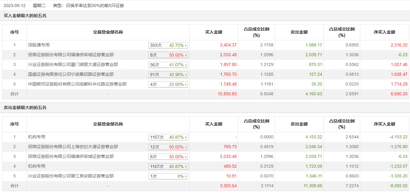 具体来看,机构买入489.52万元,卖出5876.31万元,合计净卖出5386.79万元。此外,知名游资现身龙虎榜,宁波桑田路(国盛证券有限责任公司宁波桑田路证券营业部)净买入1638.47万元。此外,深股通专用、招商证券福清侨荣城证券营业部分别买入3404.37万元、2033.48万元;招商证券上海世纪大道证券营业部、招商证券福清侨荣城证券营业部分别卖出2046.54万元、2039.71万元。