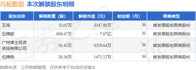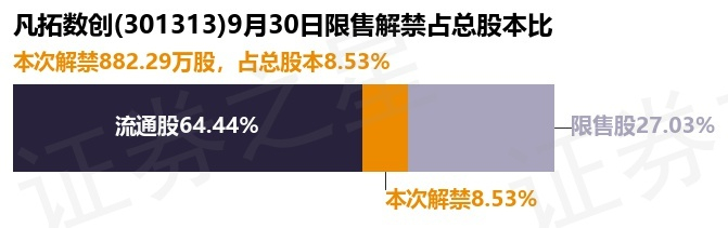 凡拓数创(301313)882.29万股限售股将于9月30日解禁,占总股本8.53%