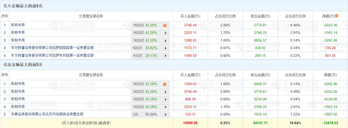 龙虎榜丨北方长龙涨3.69%,四机构净卖出1.33亿元