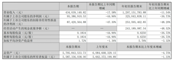 财报显示,敷尔佳今年前三季度营业收入12.97亿元,同比下降11.54%;归属净利润3.25亿元,同比下降36.73%;扣非净利润为2.54亿元,同比下降48.2%。对比今年中报数据,当时营收和净利润的降幅分别为8.15%和32.44%,显示公司业绩下滑呈现加速态势。
