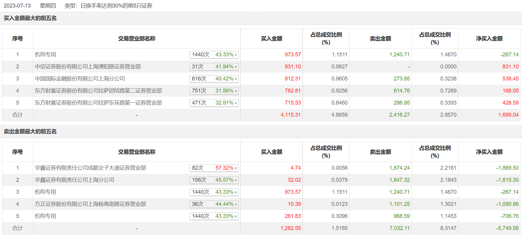 具体来看,机构买入1235.4万元,卖出2209.3万元,合计净卖出973.9万元。此外,知名游资现身龙虎榜,孙哥(中信证券上海溧阳路证券营业部)、中国国际金融上海分公司分别买入831.10万元、812.31万元;华鑫证券成都交子大道证券营业部、华鑫证券上海分公司分别卖出1874.24万元、1847.32万元。