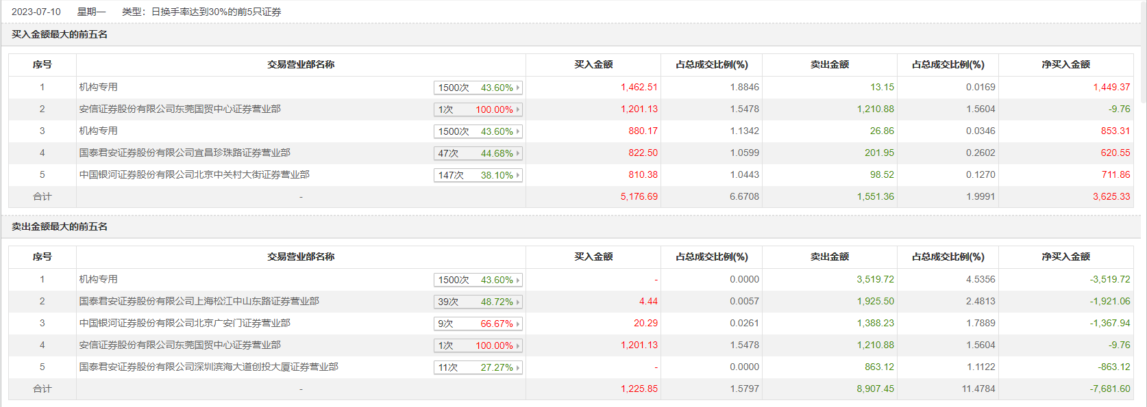 具体来看,机构买入2342.68万元,卖出3559.73万元,合计净卖出1217.05万元。此外,安信证券东莞国贸中心证券营业部、国泰君安证券宜昌珍珠路证券营业部分别买入1201.13万元、822.50万元;国泰君安证券上海松江中山东路证券营业部、中国银河证券北京广安门证券营业部分别卖出1925.50万元、1388.23万元。