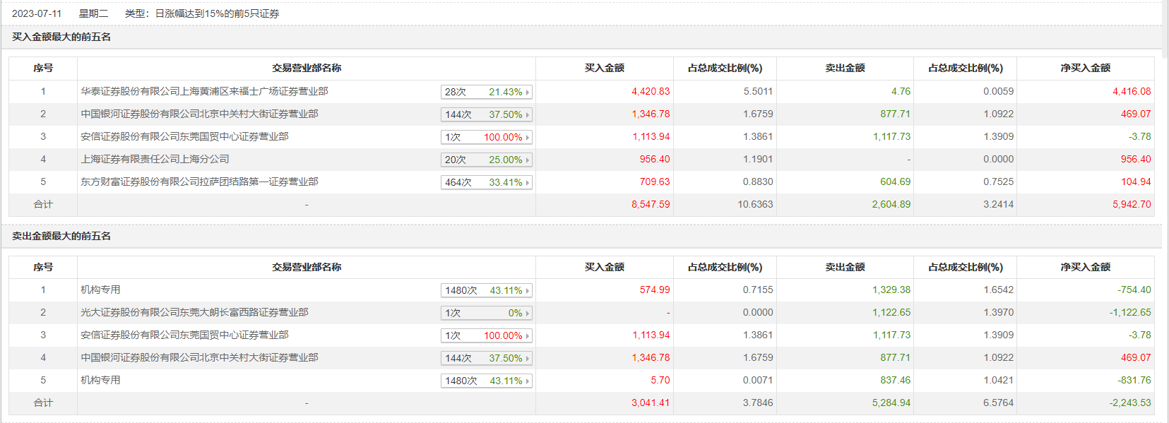 具体来看,机构买入580.69万元,卖出2166.84万元,合计净卖出1586.16万元。此外,华泰证券上海黄浦区来福士广场证券营业部、中国银河证券北京中关村大街证券营业部分别买入4420.83万元、1346.78万元;光大证券东莞大朗长富西路证券营业部、安信证券东莞国贸中心证券营业部分别卖出1122.65万元、1117.73万元。