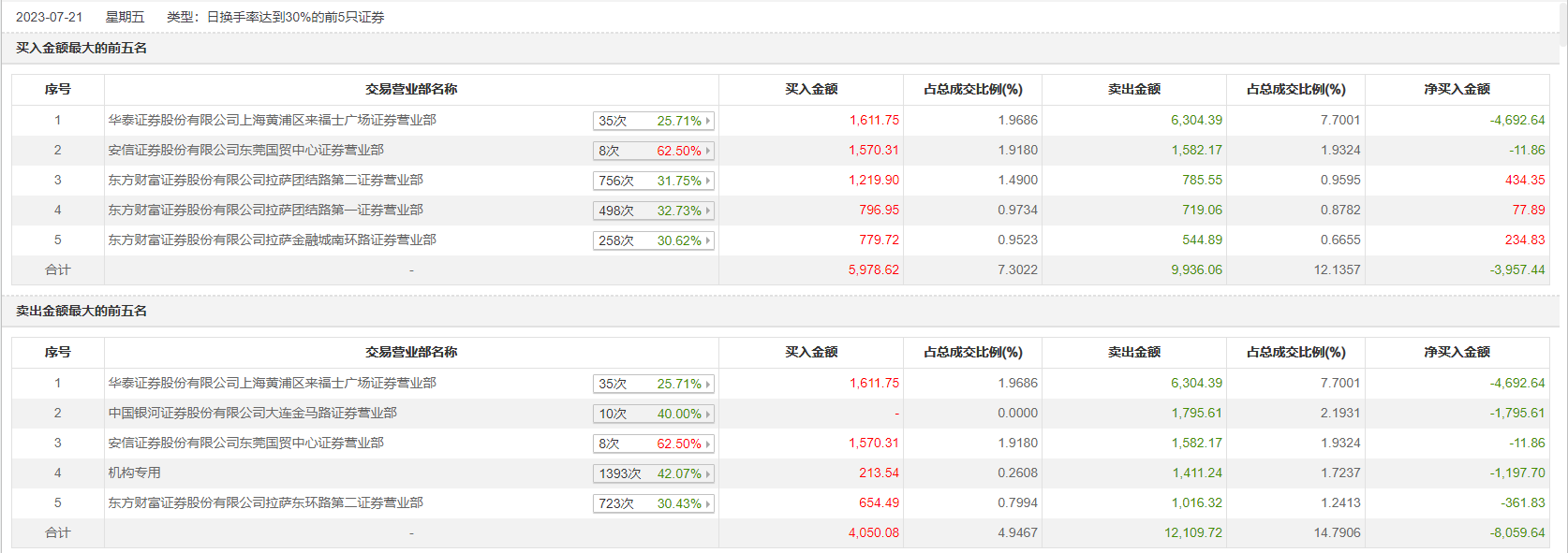 具体来看,机构买入213.54万元,卖出1411.24万元,合计净卖出1197.7万元。此外,华泰证券上海黄浦区来福士广场证券营业部、中国银河证券大连金马路证券营业部分别卖出6304.39万元、1795.61万元;华泰证券上海黄浦区来福士广场证券营业部、安信证券东莞国贸中心证券营业部分别买入1611.75万元、1570.31万元。