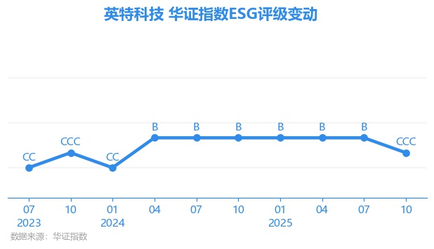 日前,华证指数公布了新一期(2025年10月31日)的ESG评级结果,英特科技(301399.SZ)获得CCC评级(华证指数评级为C起至AAA九档,C为最低档,AAA为其最高一级评级/AA为其第二档),上一期(2025年7月31日)ESG评级为B。本期ESG评级在492家机械制造行业A股上市公司中排名第263(上一期排名第219)。