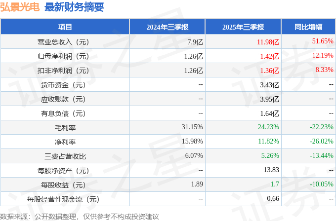 弘景光电(301479)2025年三季报简析:营收净利润同比双双增长,公司应收账款体量较大
