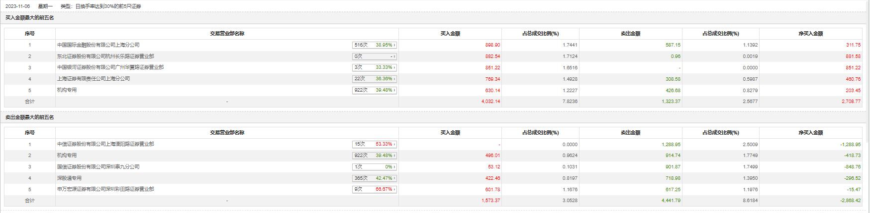 具体来看,机构买入1126.15万元,卖出1341.42万元,合计净卖出215.27万元。此外,知名游资现身龙虎榜,中国国际金融上海分公司、东北证券杭州长乐路证券营业部分别买入898.90万元、882.54万元;孙哥(中信证券上海溧阳路证券营业部)、国信证券深圳泰九分公司分别卖出1288.95万元、901.87万元。