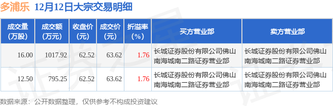 12月12日多浦乐发生2笔大宗交易 成交金额1813.17万元