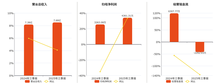 公司营业总收入为7.68亿元。归母净利润为4361.31万元。经营活动现金净流入为-2292.03万元,较去年同报告期经营活动现金净流入减少8599.80万元,同比较去年同期下降136.34%。
