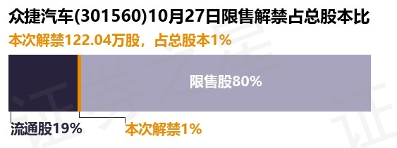 众捷汽车(301560)122.04万股限售股将于10月27日解禁,占总股本1%