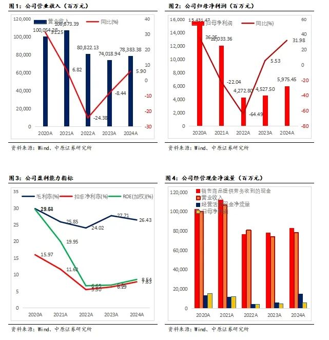 2024年公司实现营业总收入783.83亿元,同比增长5.9%;归母净利润59.75亿元,同比上升31.98%;经营活动净现金流148.14亿元,同比大幅上升159.53%。