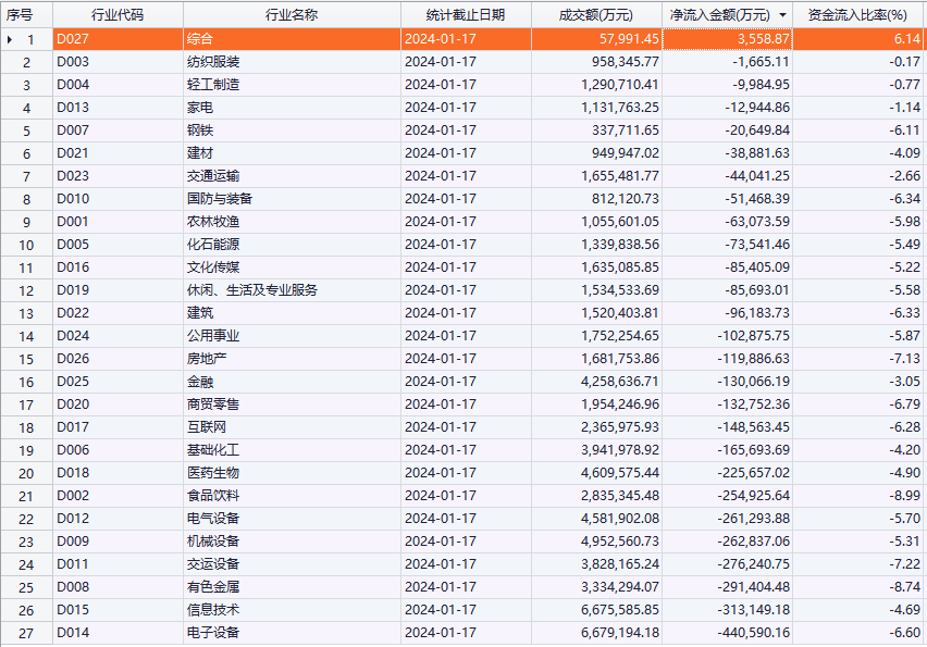 上证报中国证券网讯 Choice数据统计,今日A股主力资金净流出355.04亿元;行业方面,仅综合行业净流入0.36亿元;净流出金额最多的是电子设备,高达44.06亿元,信息技术净流出31.31亿元。个股方面,主力资金净流入前三的是招商银行、浪潮信息、平潭发展,分别净流入2.62亿元、1.97亿元、1.96亿元;净流出前三的是贵州茅台、比亚迪、隆基绿能,分别净流出10.62亿元、5.44亿元、4.39亿元。