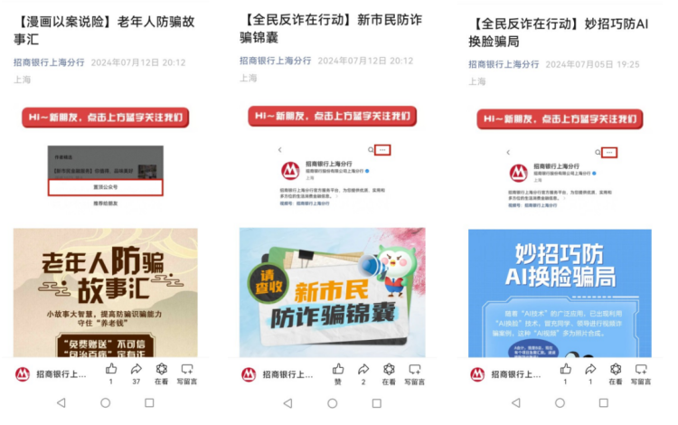 面对当前电信网络诈骗的严峻形势,招商银行上海分行自2024年初便积极行动,以“全民反诈在行动”为主题,持续加强反电信网络诈骗的宣传力度。该行于2024年7月进一步聚焦“警惕诈骗新手法,不做电诈工具人”,展开了一系列深入且广泛的宣传活动,旨在通过多渠道、多领域、多客群的全面覆盖,构筑起坚实的反诈宣传网络。