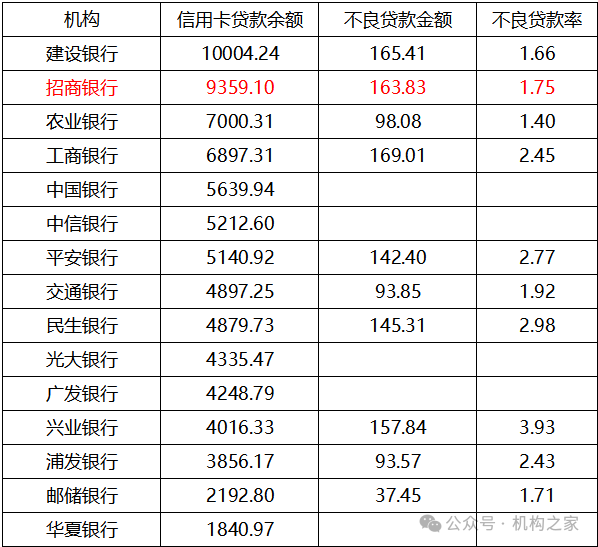 同时资产质量上,招商银行信用卡贷款不良率为1.75%,比建设银行的1.66%略高0.09个百分点。招商银行更为商业化、信用卡业务的历史也更为悠久,在“赚钱”能力被建设银行赶超的同时,资产质量也开始逊于后者。再加上整体市场日趋饱和、前述信用卡新规后的存量清理,真是无坦途后有追兵,招商银行的信用卡困境或许还只是开始。