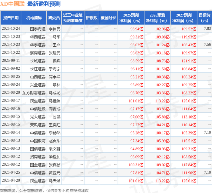 中国银河证券股份有限公司赵良毕,赵中兴近期对中国联通进行研究并发布了研究报告《中国联通2025三季度业绩点评:卫星科技新布局,科创实力提质升级》,给予中国联通买入评级。