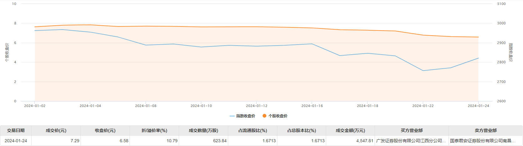 今日大宗交易成交623.84万股,成交额4547.81万元,占当日总成交额的57.48%,成交价7.29元,较市场收盘价溢价10.79%。