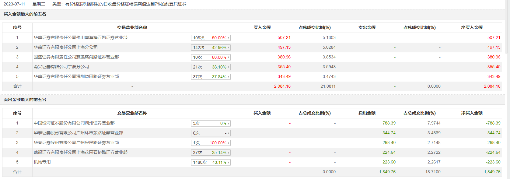 具体来看,机构合计净卖出223.6万元。此外,华鑫证券佛山南海海五路证券营业部、华鑫证券上海分公司分别买入507.21万元、497.13万元;中国银河证券湖州证券营业部、华泰证券广州环市东路证券营业部分别卖出788.39万元、344.74万元。