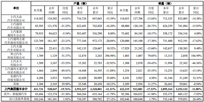 上汽集团:前8月整车销量289.52万辆,同比减少11%,新能源汽车销量同比下滑7.92%