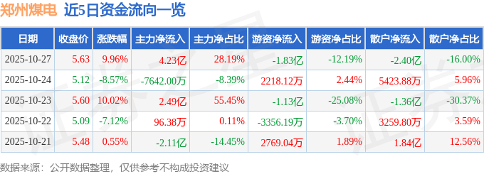 证券之星消息,郑州煤电10月27日涨停收盘,收盘价5.63元。该股于10点22分涨停,10次打开涨停,截止收盘封单资金为1555.34万元,占其流通市值0.23%。