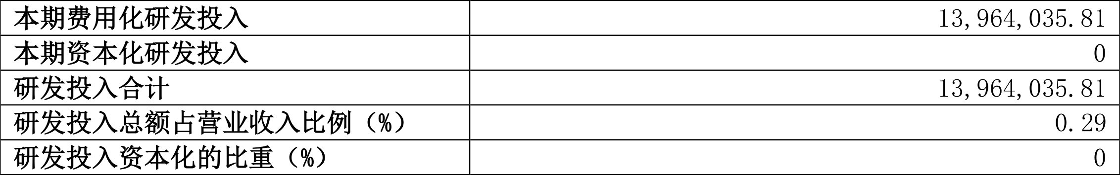 2023年全年,公司研发投入金额为1396.40万元,同比增长6.41%;研发投入占营业收入比例为0.29%,相比上年同期上升0.09个百分点。此外,公司全年研发投入资本化率为0。