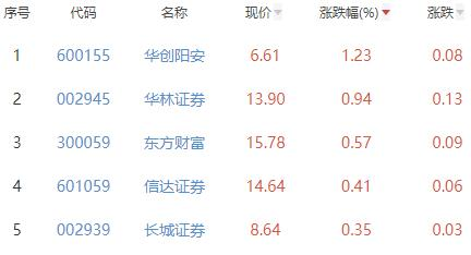 其中,华创阳安、华林证券、东方财富、信达证券、长城证券位列板块涨幅前五位,涨幅分别为1.23%、0.94%、0.57%、0.41%、0.35%。