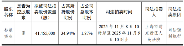 华创云信股东杉融实业1.87%股份将二次司法拍卖,2025年11月8日开拍